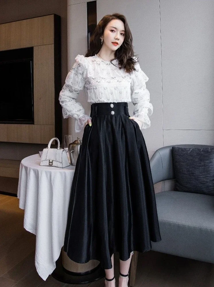 Woman Skirt Midi Black High Waist Skirts for Women V Casual Clothing Sales Korean Fashion Modest Luxury Elegant Quality Style
